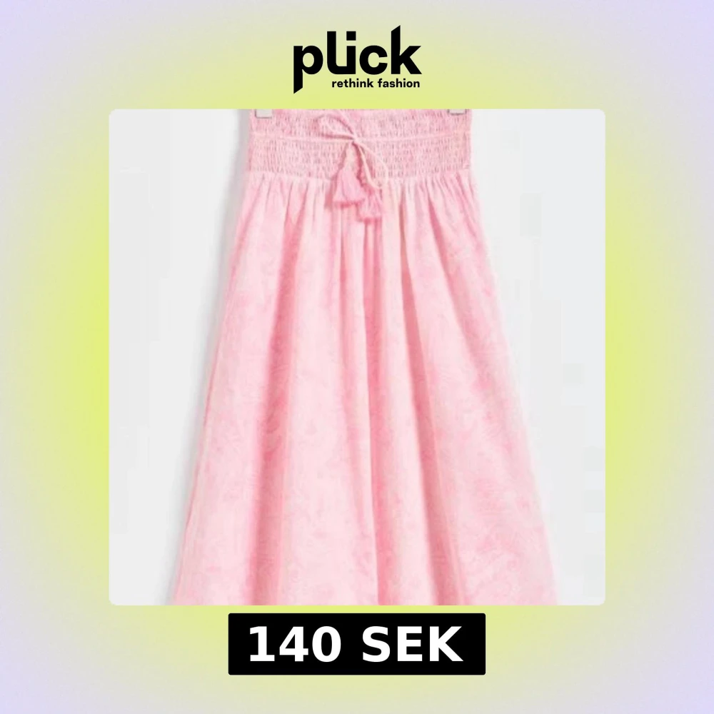 Superfin ljusrosa långkjol med smock i midjan och söt knytning framtill. Kjolen har ett diskret mönster och är gjord i ett lätt bomullstyg som passar perfekt till varma dagar. Originellt pris: 300kr