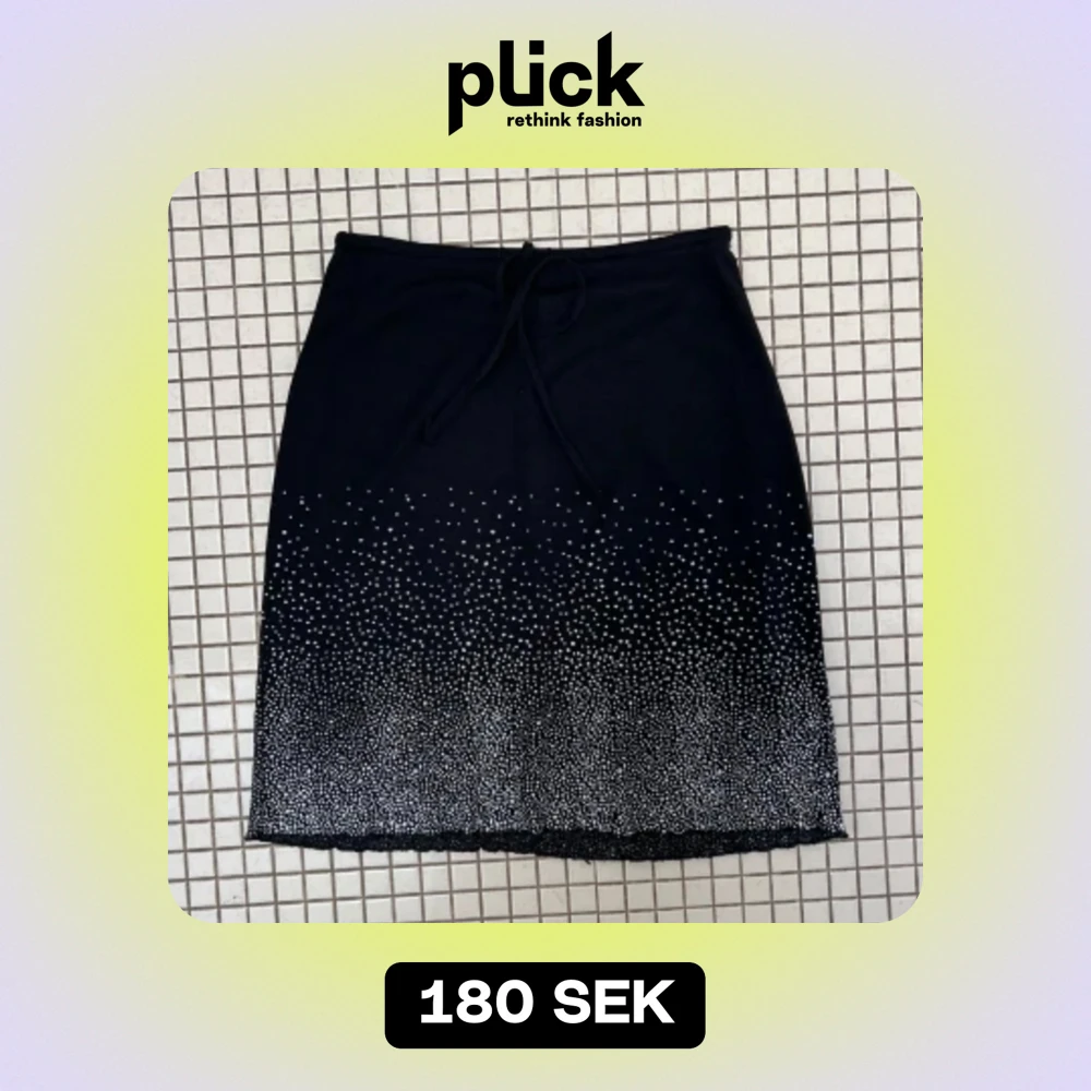 Säljer en superfin svart kjol från Quelque med glittriga prickar som skapar en snygg gradient-effekt. Kjolen har en knytning i midjan för en justerbar passform. Perfekt för festliga tillfällen eller en utekväll! 🖤✨