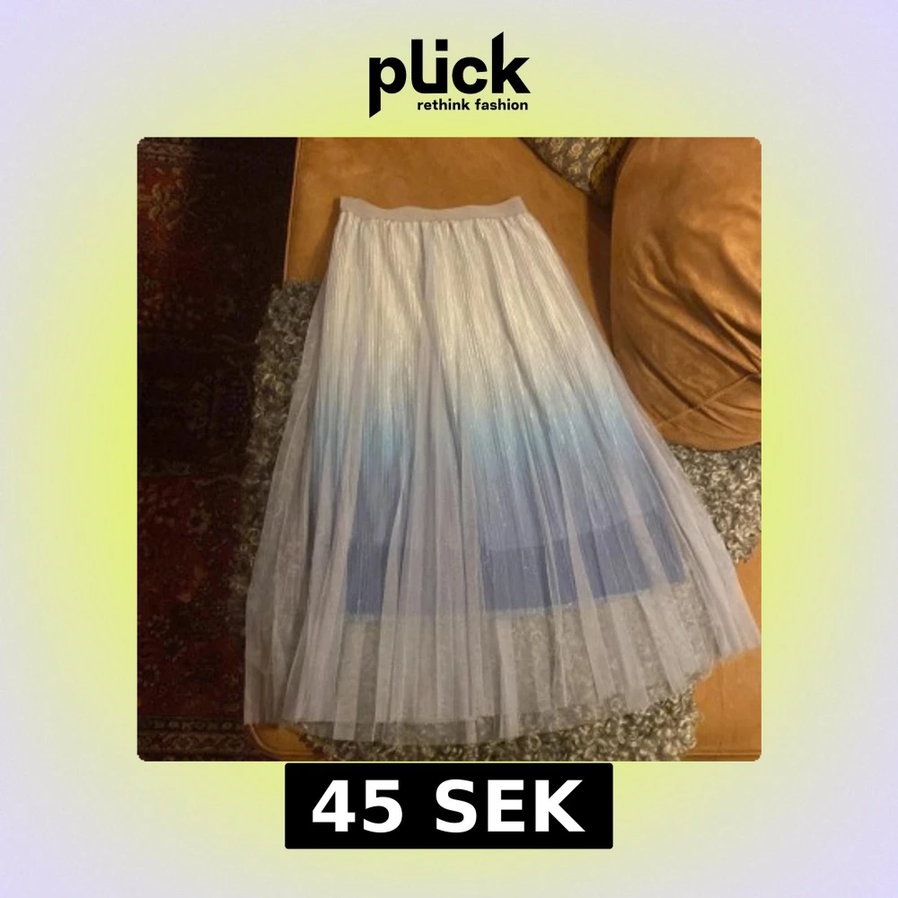 Säljer en superfin långkjol från Ed London i glittrigt tyg. Kjolen är plisserad och har en snygg ombre-effekt i vitt och blått. Perfekt för dig som vill sticka ut med en drömmig och trendig look. Resår i midjan för extra komfort.