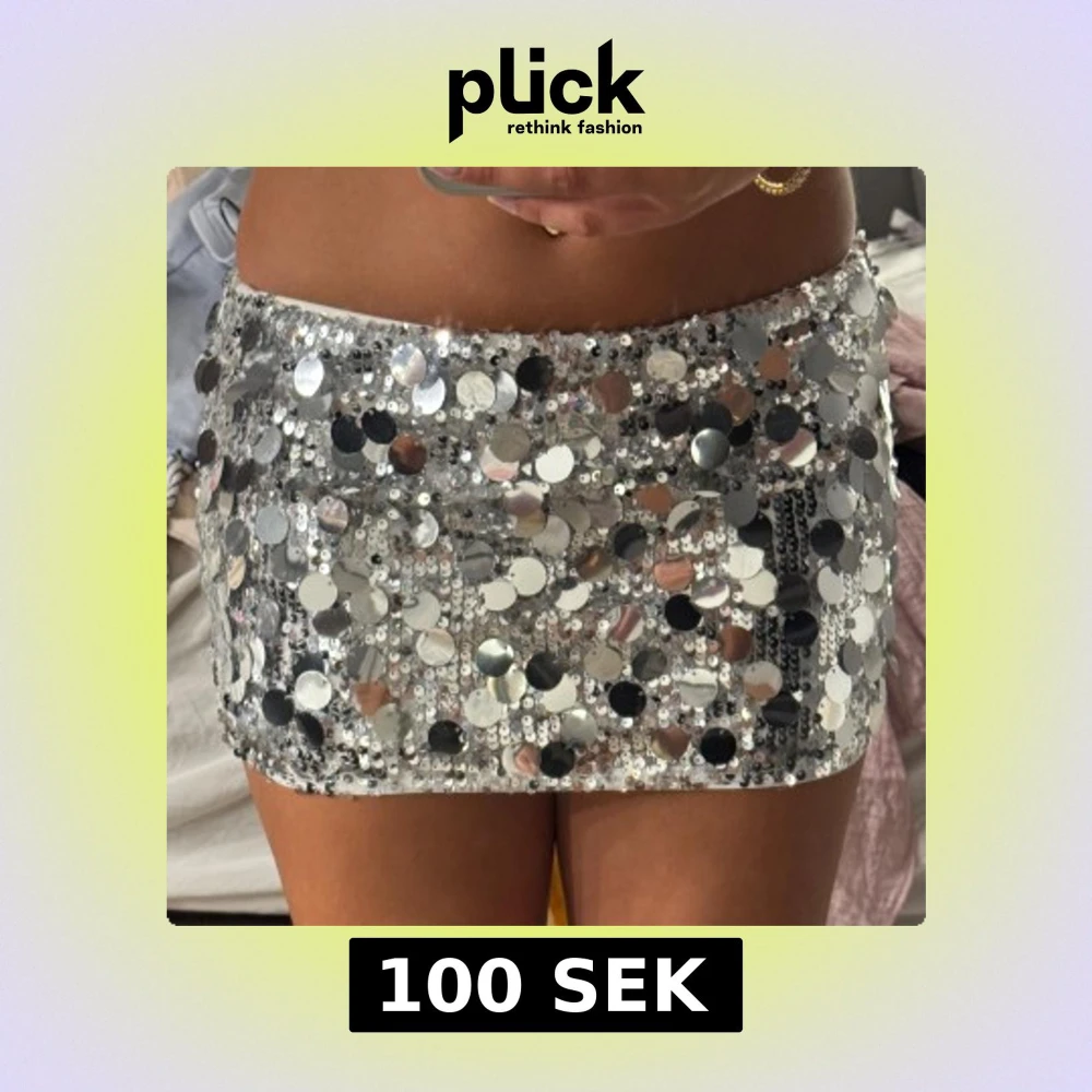 Superglittrig minikjol täckt av stora och små silvriga paljetter som verkligen fångar ljuset. Kjolen är tight och kort, perfekt för att sticka ut. Den har en rak passform och är helt täckt av paljetter för maxad partykänsla.