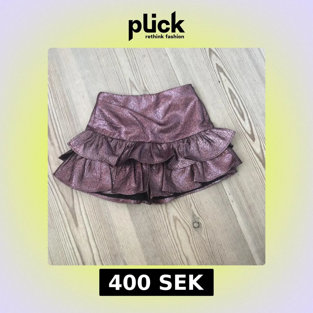 Supersnygg glittrig kjol från Zara i metallicrosa nyans. Kjolen har flera lager volanger som ger en cool och trendig look. Perfekt för dig som vill sticka ut lite extra! Kjolen är kort och har en figurnära passform. Den har inbygga shorts och är slutsåld därför priset! Skriv om ni vill ha bild på eller liknade❤️