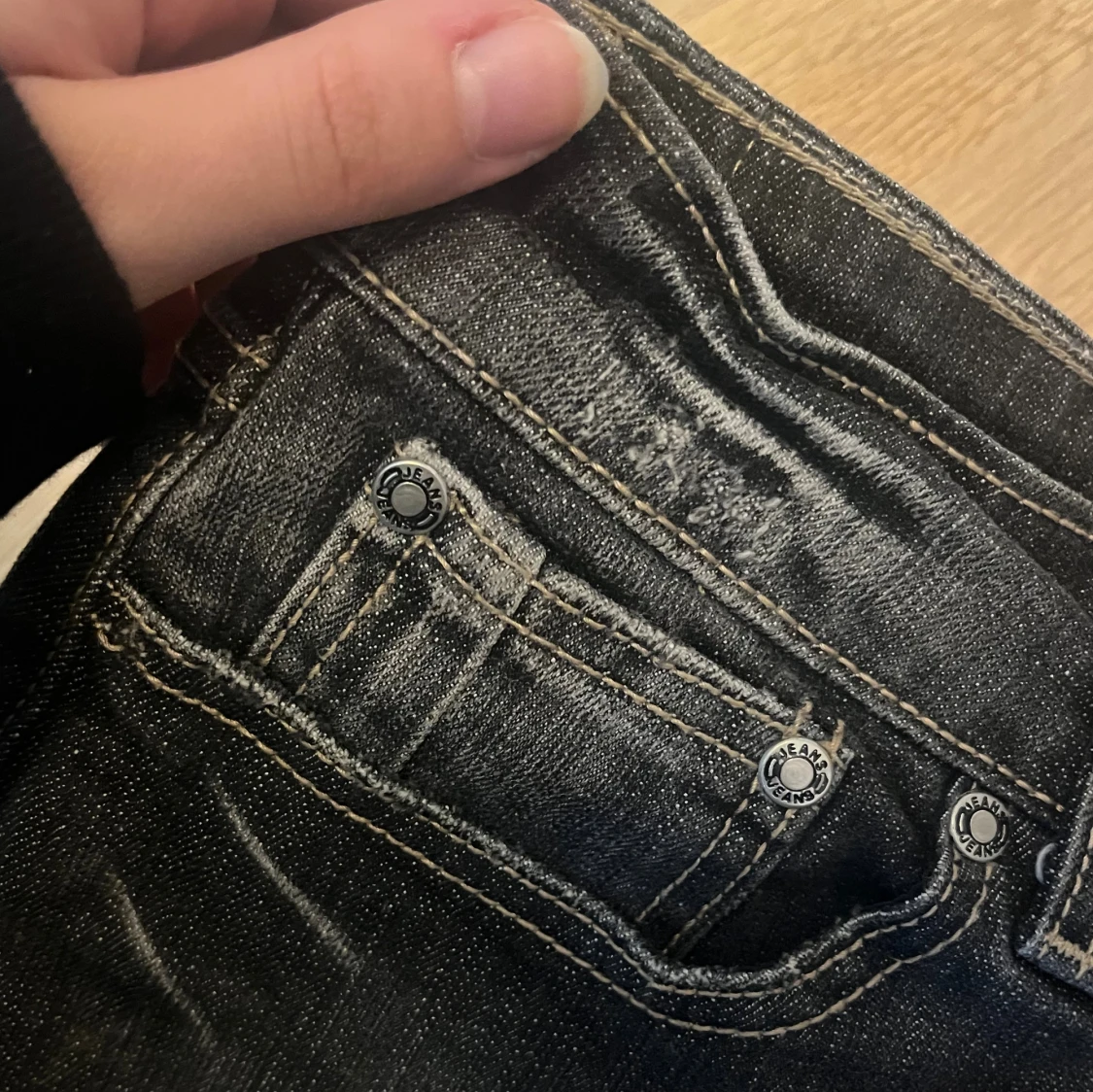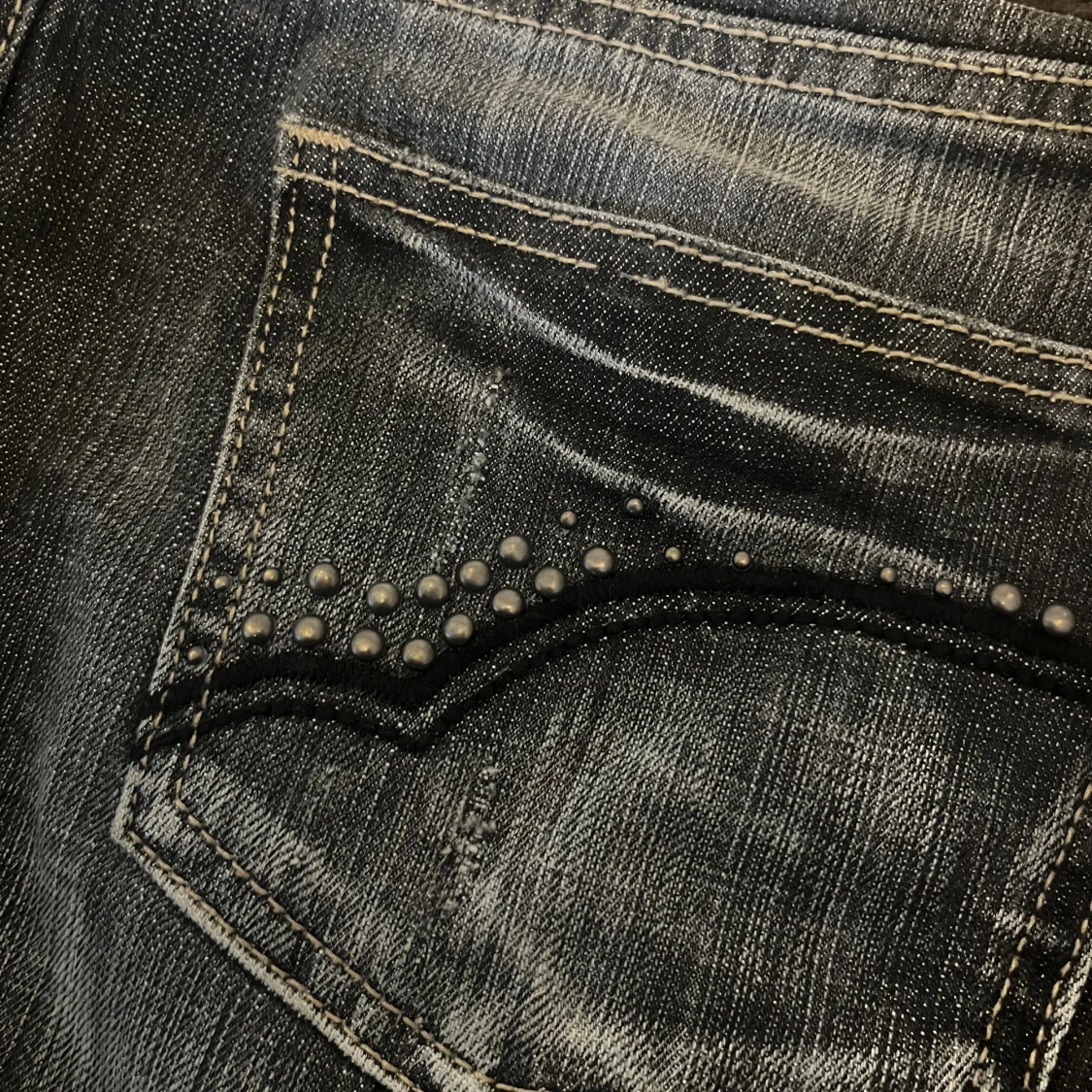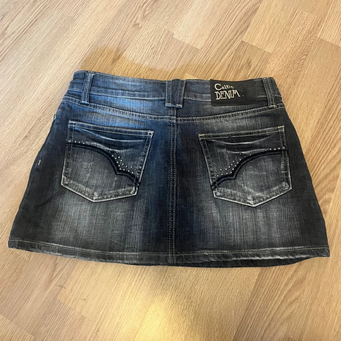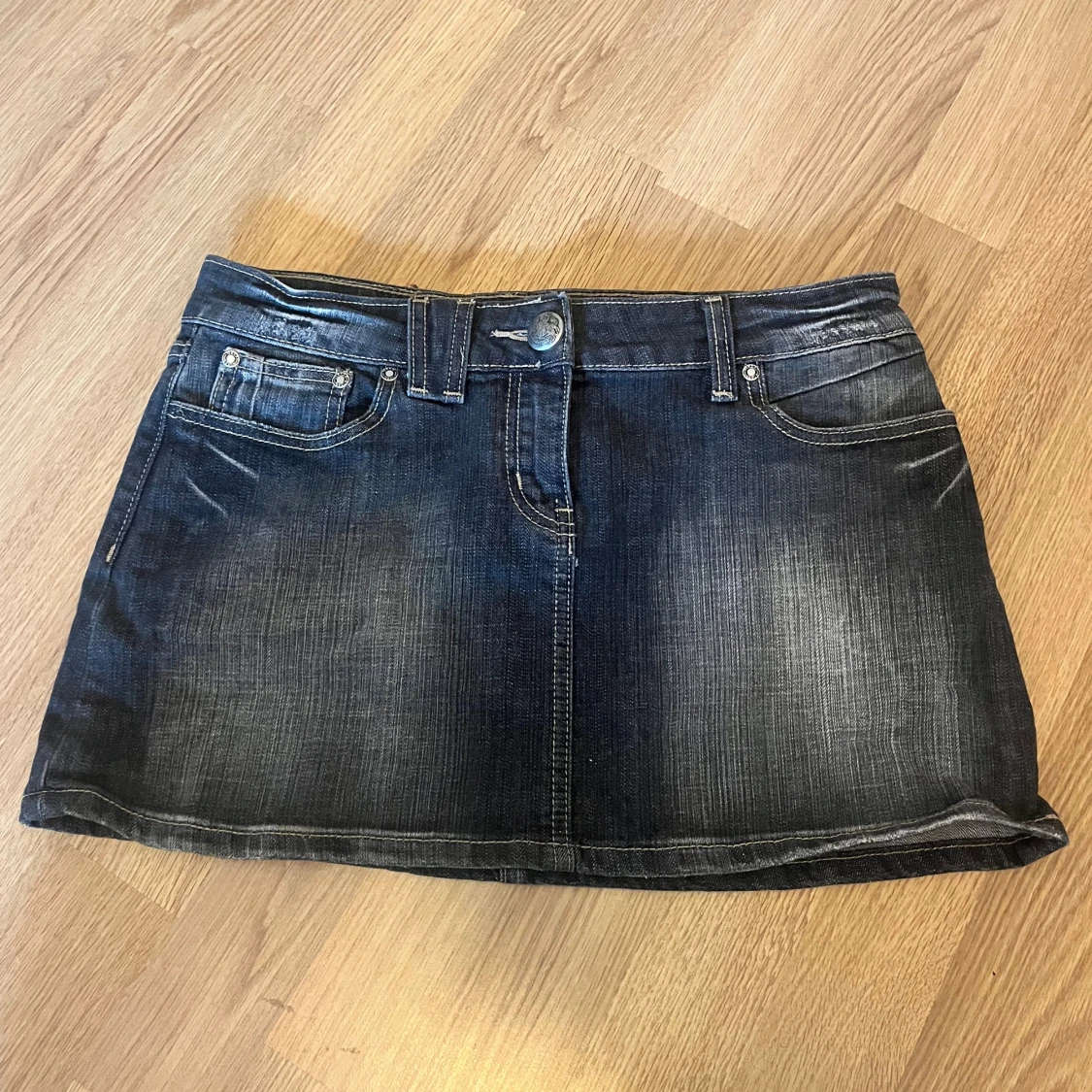 Supersnygg minikjol som har en ”distressed” look, med en massa coola silver detaljer. Köptes vintage, passar ca S-M.