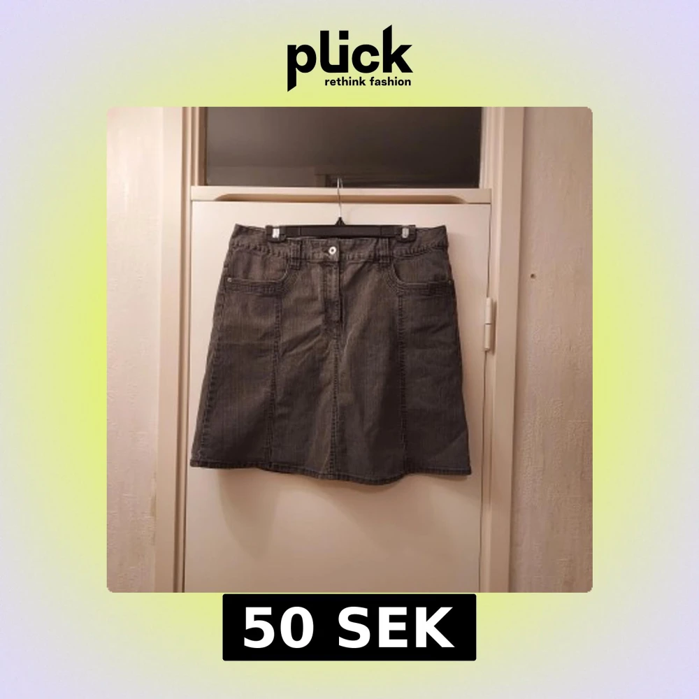 Snygg grå strechig jeanskjol från Isolde med klassisk design. Kjolen har en normal passform och praktiska fickor fram. Perfekt för en avslappnad stil. St 42.