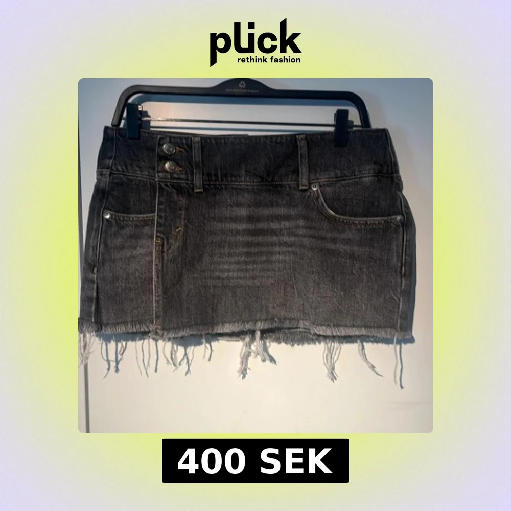 Säljer en grå jeanskjol från Weekday med råa kanter och dubbla knappar framtill. Kjolen har klassiska fickor både fram och bak samt en kort passform.