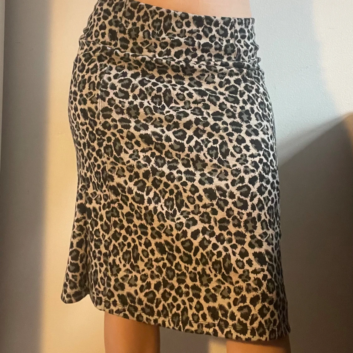 Midikjol i svart och grått leopardmönster, ganska tjockt och varmt material. Står ej storlek men passar mig som har s och är 165 cm. Kan mötas på söder eller posta. Skriv helst innan ni trycker på köp nu då jag är bortrest en del i sommar.
