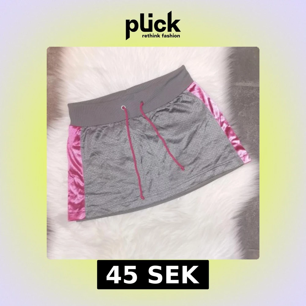Sportig kortkjol i grått med glansiga rosa paneler på sidorna och rosa snörning i midjan. Kjolen har bred resår upptill och är tillverkad i ett syntetmaterial med mesh på utsidan. Storlek XS, köpt på H&M. Är i mycket fint skick.