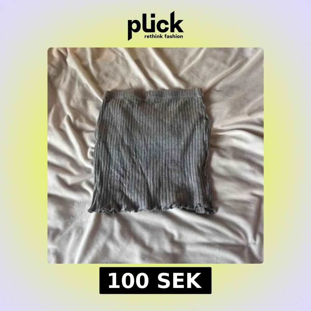 Säljer en grå ribbad kortkjol med vågig kant nertill. Kjolen har en slim passform och är tillverkad i mjukt, stretchigt material som sitter skönt. Perfekt för dig som gillar enkel och stilren design med lite edge.