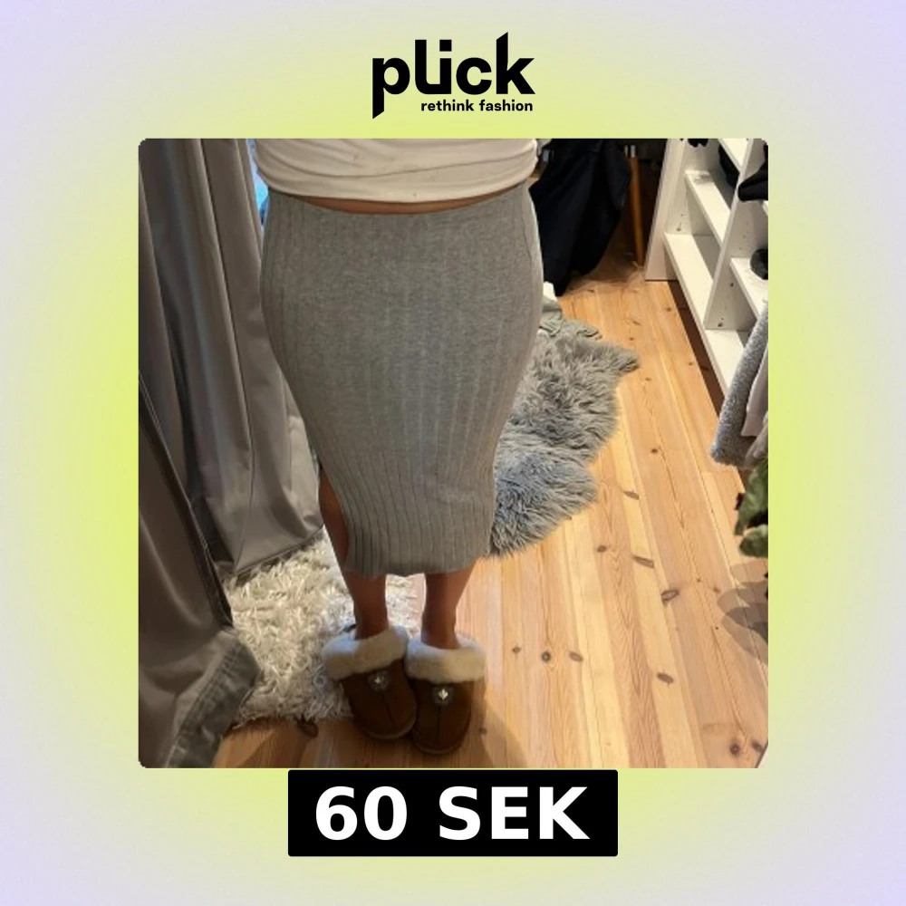 Säljer en snygg grå långkjol med ribbad struktur och slits på sidan. Kjolen har en tight passform och är gjord i ett stickat material som känns mjukt och skönt mot huden. Perfekt för dig som gillar stilrena och enkla plagg.