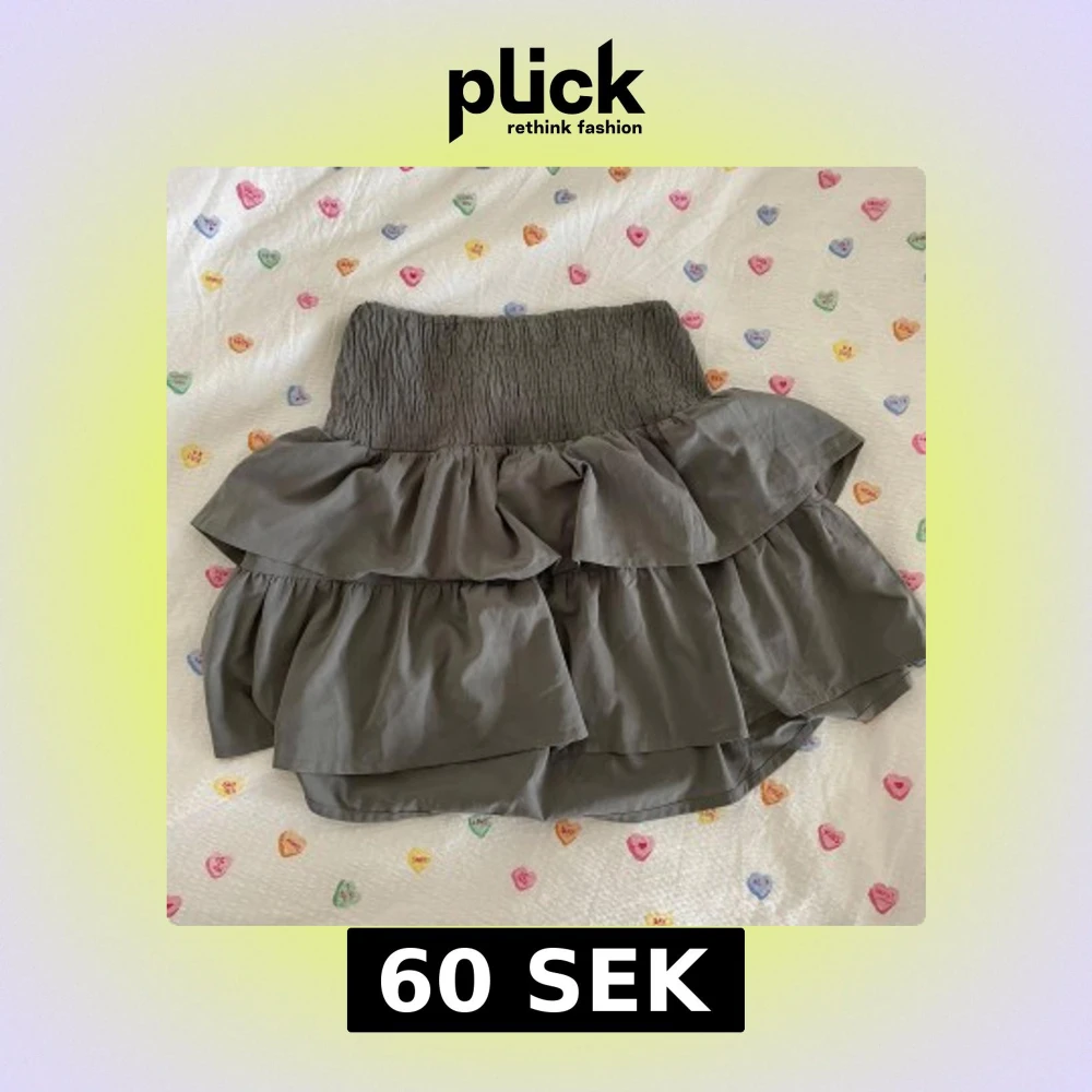 Supersöt grå kjol från ICHI med bred smock i midjan och flera lager volanger.