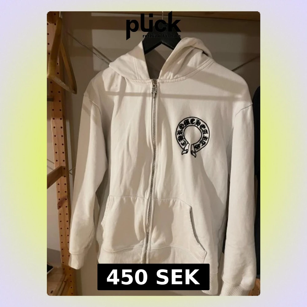 En hoodie från chrome hearts. Den klassiska logan på fram och baksidan med en detaljerad dragkedja👍. Den har en liten blå fläck på vänstra armen men den syns knappast.(Du vet varför den är billig)
