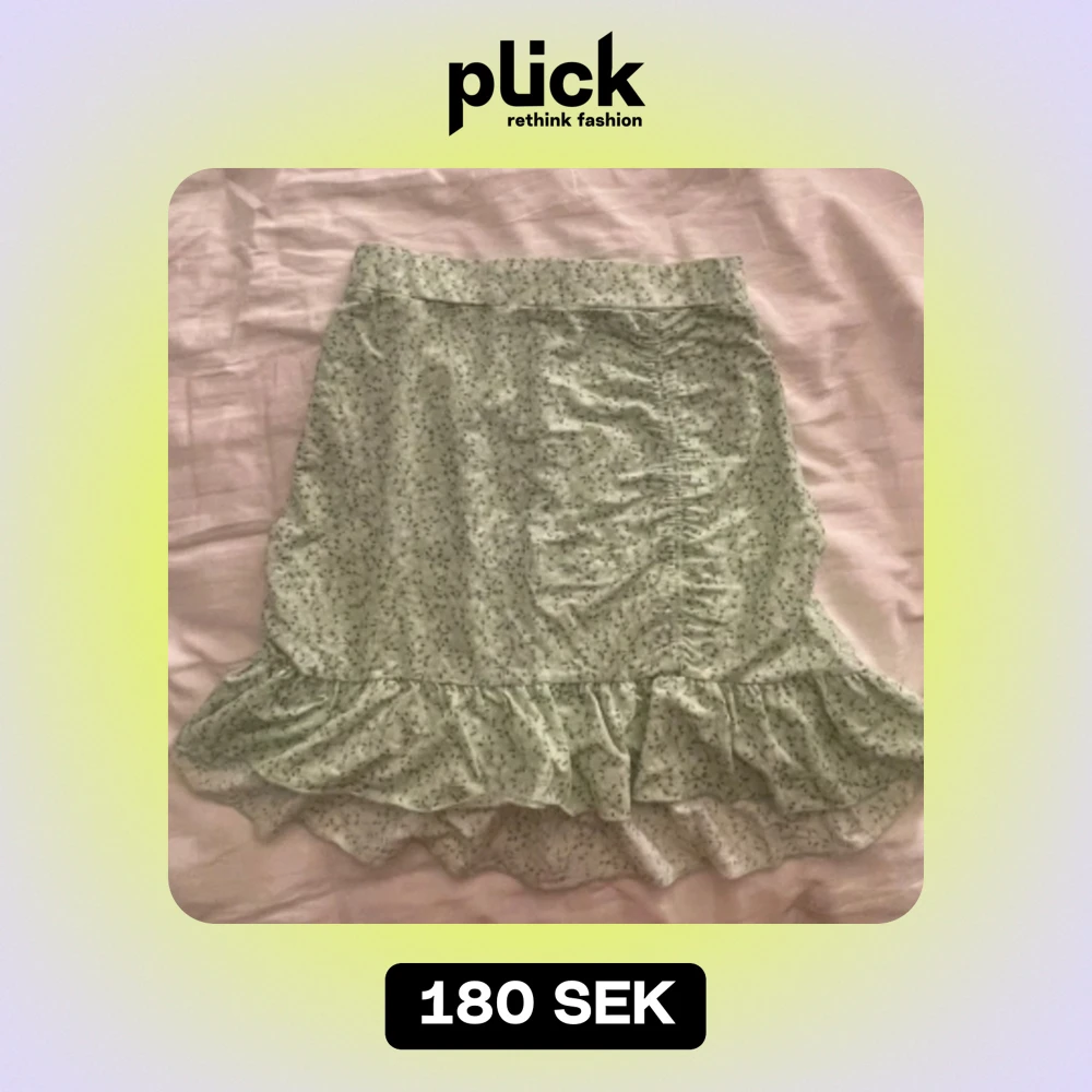 Säljer en superfin grön blommig kjol från Gina Tricot i storlek S. Kjolen har en volangdetalj längst ner och är perfekt för sommaren. Den är i nyskick och har en normal passform. Materialet känns som bomull och den är väldigt bekväm att ha på sig. Perfekt för både vardag och fest!
