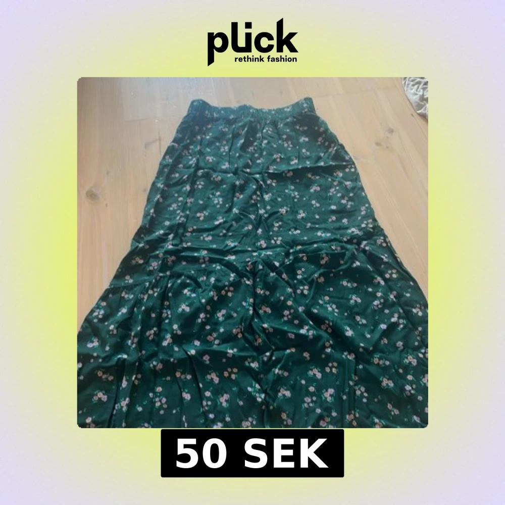 Snygg grön långkjol med små blommor i vitt och lila. Kjolen har resår i midjan för en bekväm passform och ett flowigt fall. Så skön material och så snygg!💕 priset går att diskutera! Aldrig andvänd☺️