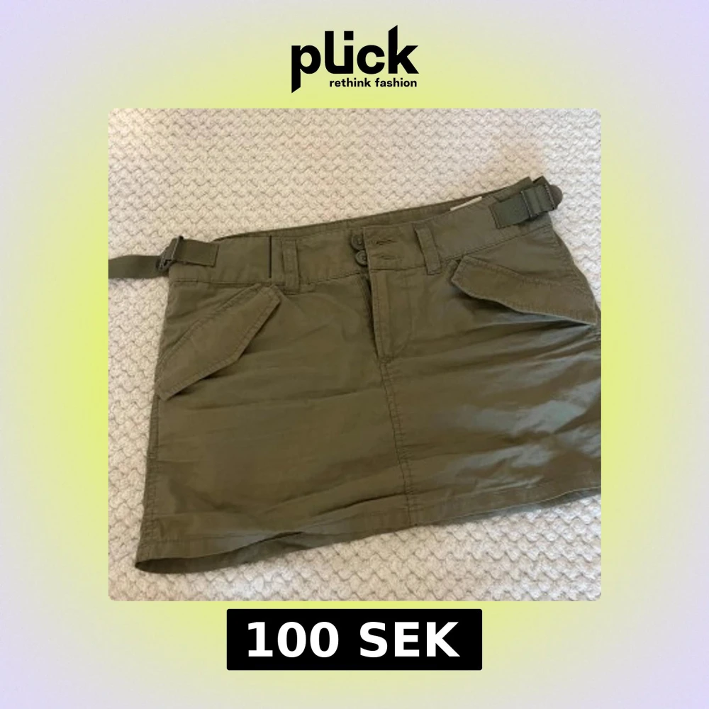 Snygg olivgrön kortkjol med två stora fickor fram och två bak. Kjolen har bältdetalj i midjan och stängs med dubbla knappar och dragkedja. Perfekt för en avslappnad och cool stil, passar till sneakers eller boots. Den justeras beroende på hur din kroppsform är så storleken är inte ett problem jag själv är s och den passar perfekt när jag justerar🤍