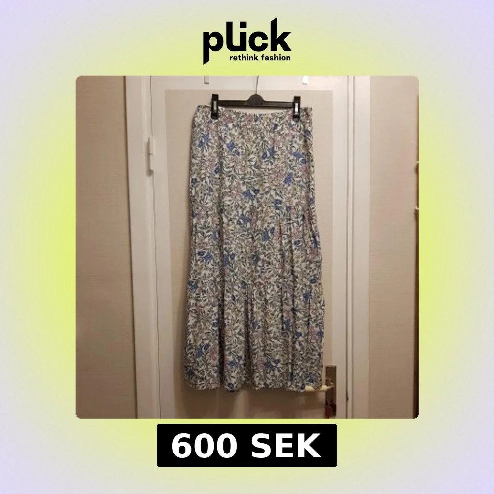 Charmig långkjol från C&A med ett vackert blommönster i blått, gult och rosa på en vit bakgrund. Kjolen har en bekväm elastisk midja och är perfekt för en somrig look. Den luftiga designen gör den idealisk för varma dagar.