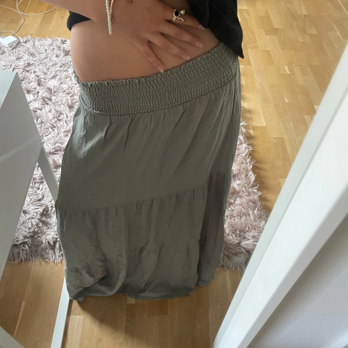 Helt ny! Superskön och flowy långkjol. Kjolen har bred smock i midjan för en bekväm passform och faller snyggt i flera lager.