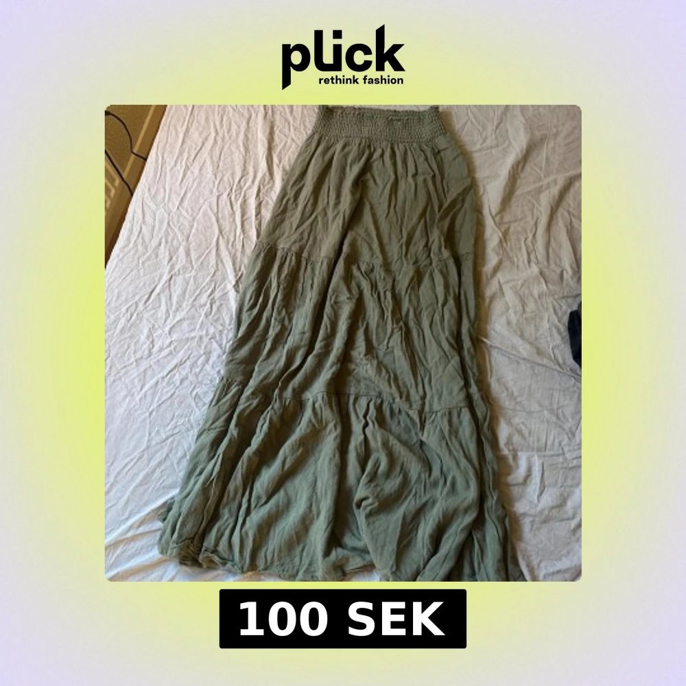 Säljer en flowy grön långkjol från lager 157 i storlek XS. Kjolen har smock i midjan och flera volanger som ger en avslappnad och bohemisk vibe. Perfekt för varma dagar och enkel att styla med crop tops eller stickade tröjor.