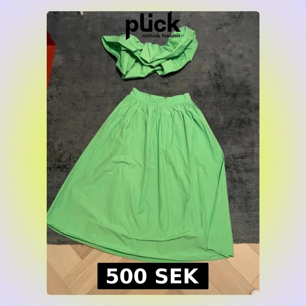 Snygg grön långkjol från H&M i luftig bomull. Kjolen har hög midja, bred linning och fina veck som ger volym. Perfekt för dig som vill sticka ut med en poppig färg och flowig siluett.