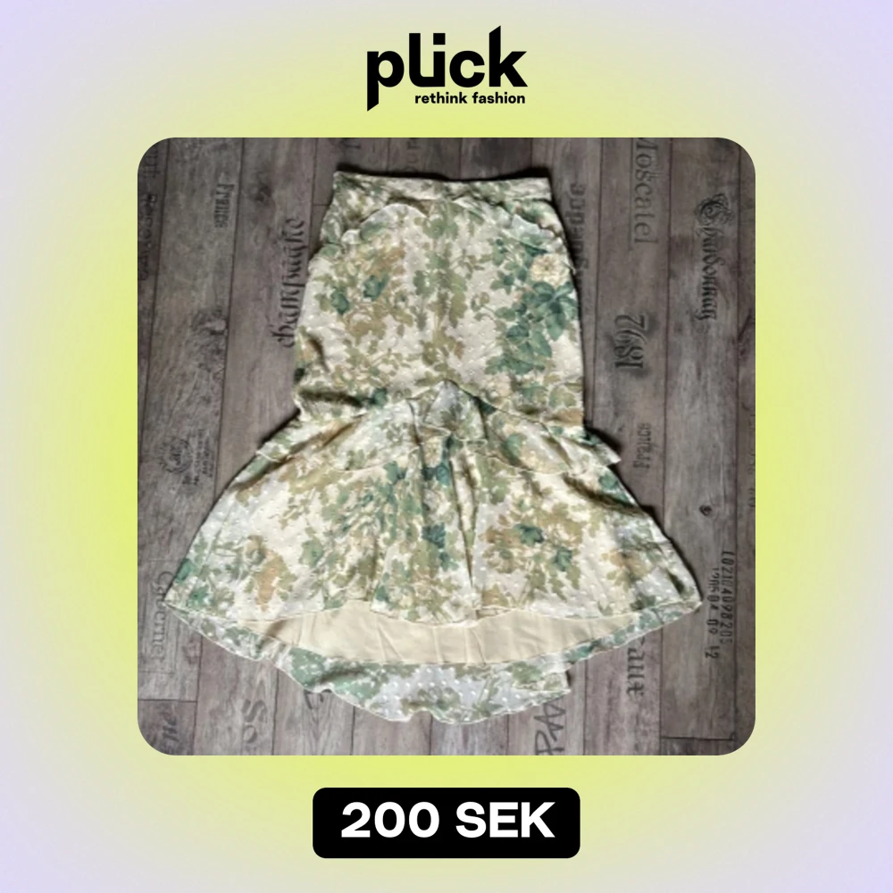 Jättefin grön mönstrad kjol som inte kommer till användning hos mig. Med gömd dragkedja där back. Använd en gång så i fint skick.