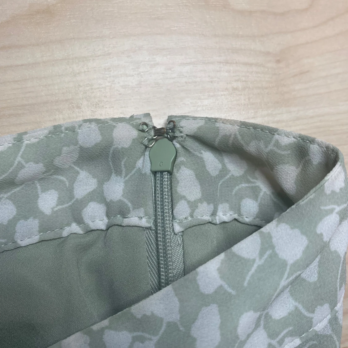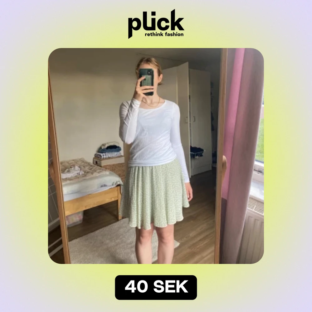 Säljer en superfin mintgrön kjol från NA-KD med ett blommigt(?) mönster. Det finns en tråddragning som syns på bilden, men den är väldigt liten och märks knappt när man har den på sig. Sista bilden visar bara dragkedja och metallgrej för att öppna/stänga.