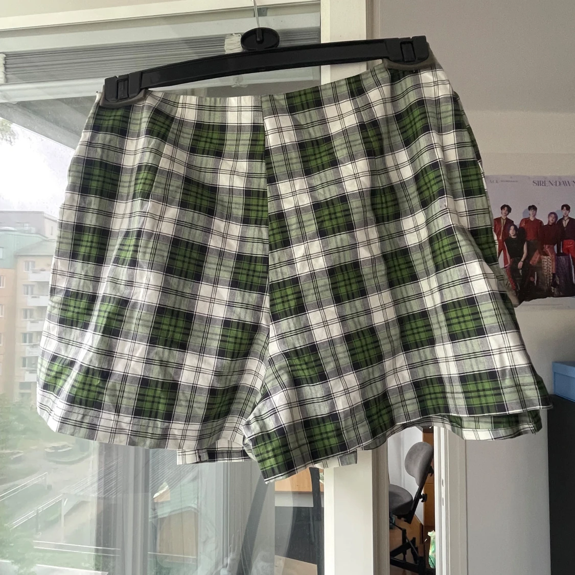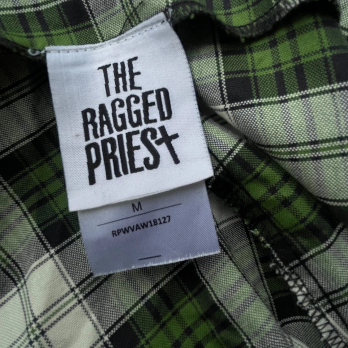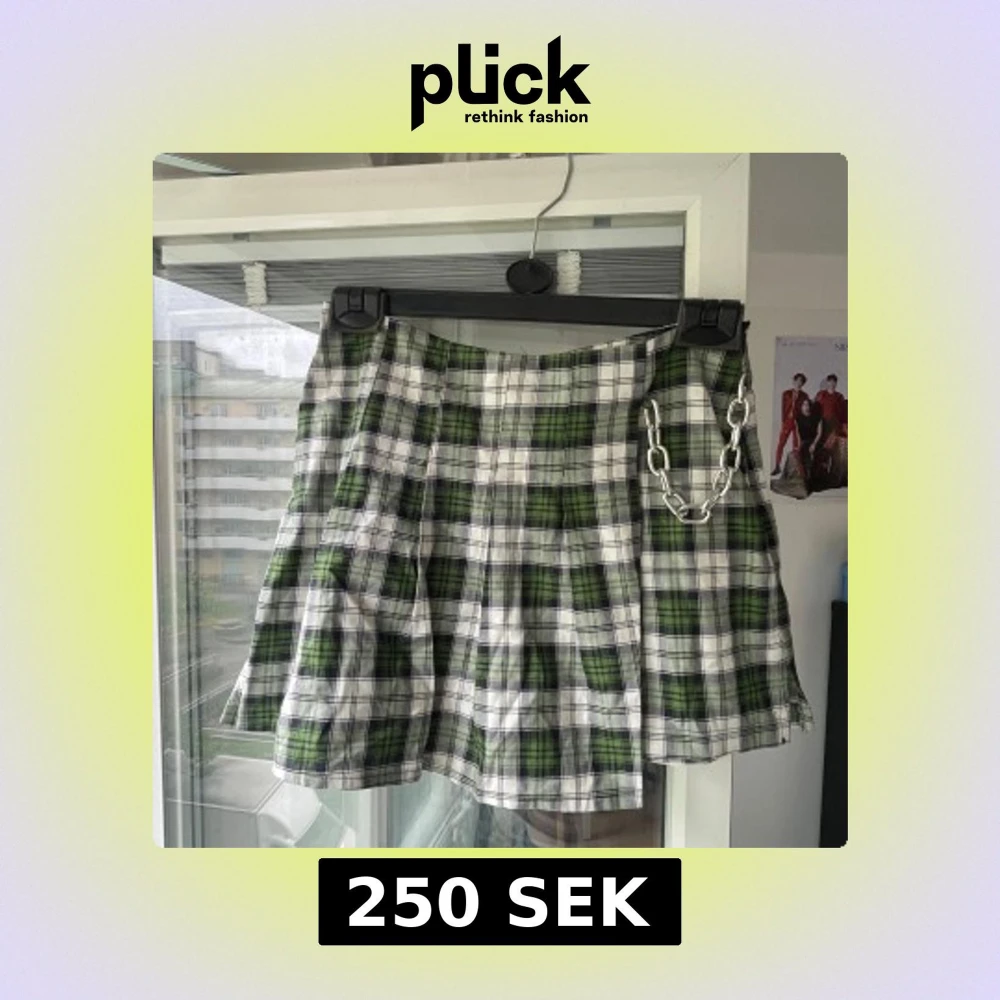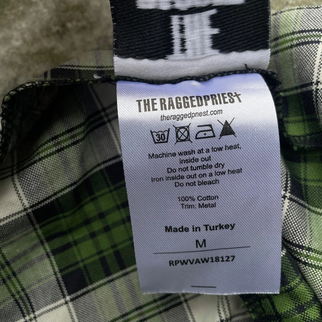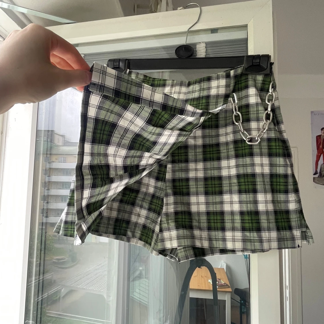 Grön och vit rutig kort skort (kjol+skjorts) från The Ragged Priest i omlottmodell med cool silverfärgad kedjedetalj. Kjolen har plisserad look och är tillverkad i ett lätt bomullstyg. Perfekt för dig som vill sticka ut med en edgy vibe. Aldrig använd pga fel storlek.