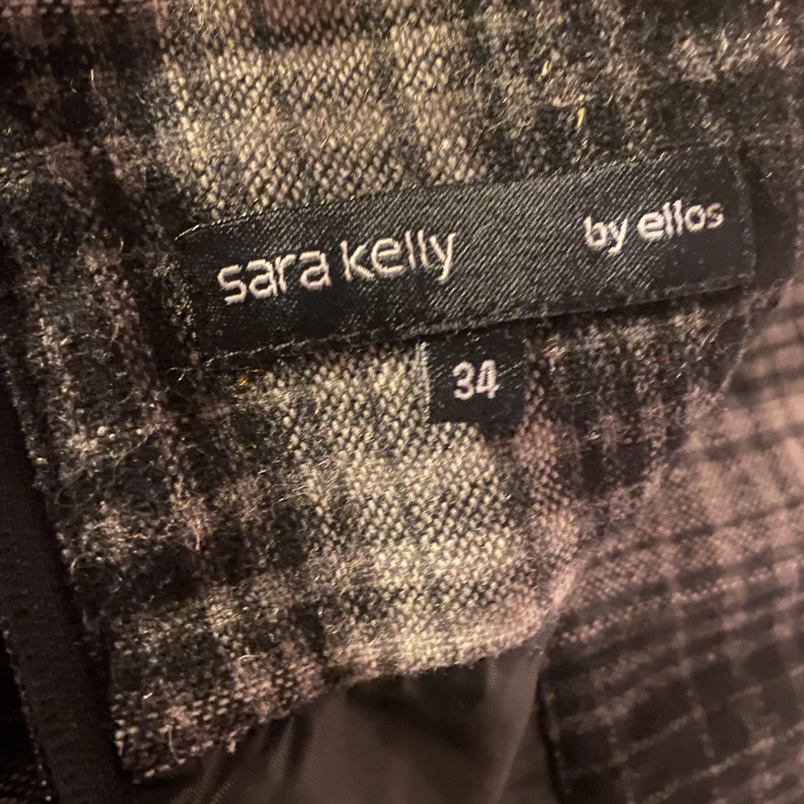Längd: Ungefär till knäna (jag är 164 cm för referens) Den har fickor på sidorna vilket alltid e bra. Köpt på secondhand har dock bara använt den en gång. det är ingen fläck vid hörnet utan det är ljuset som gör det gult