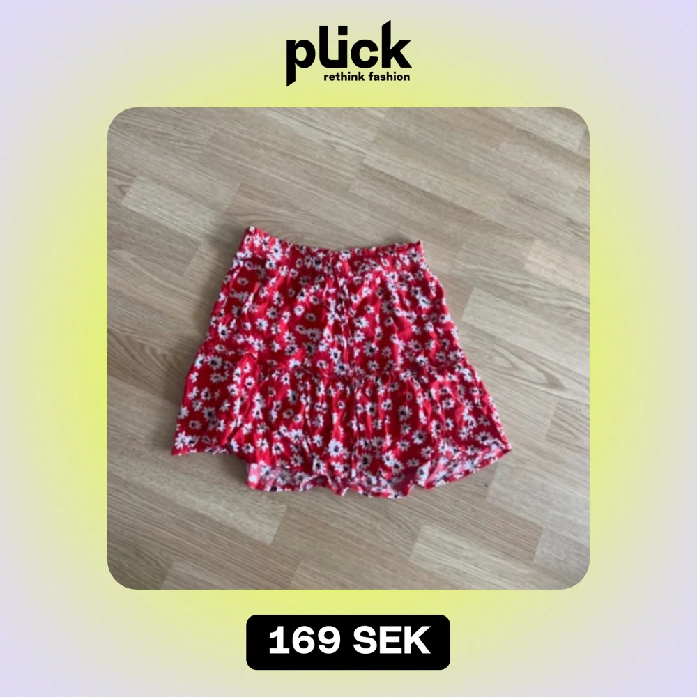 Gullig röd kjol med blommor på