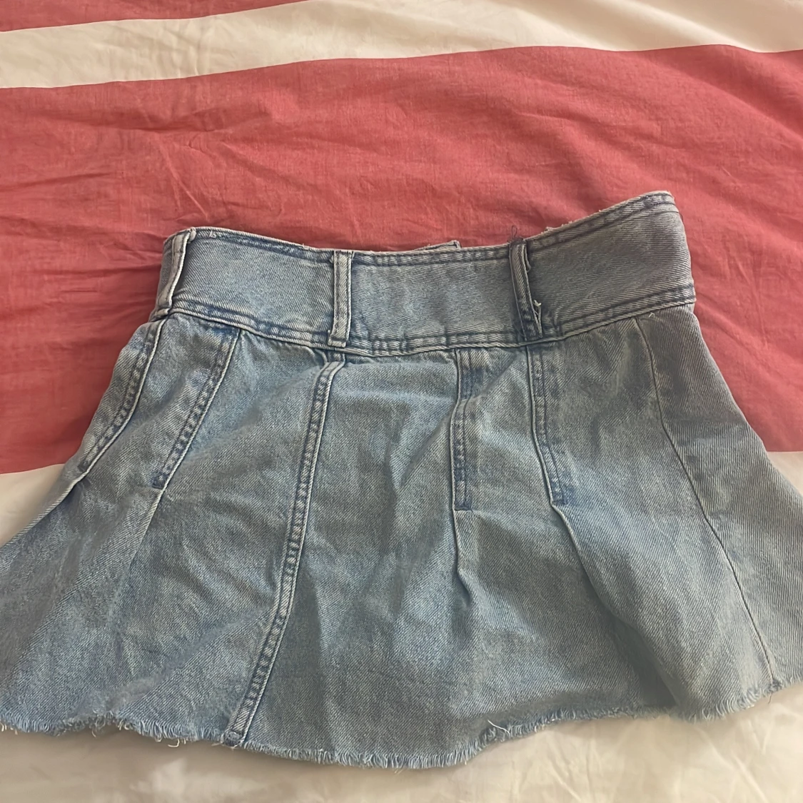 Gullig ljusblå jeanskjol med rå kant och medel midja. Kjolen har en kort längd och klassisk femficksdesign. Perfekt för en avslappnad stil.
