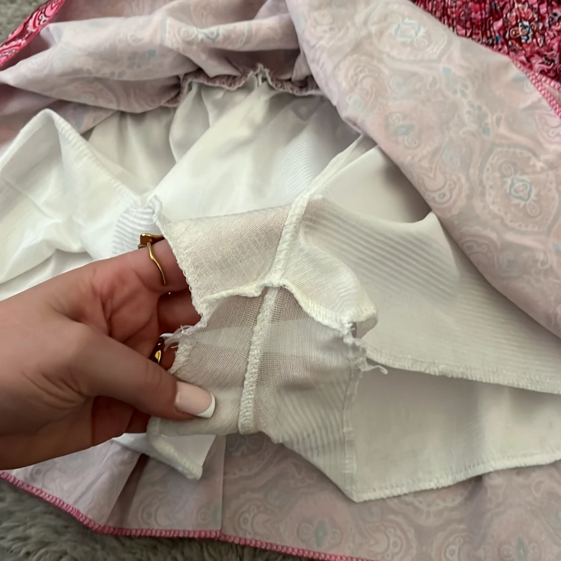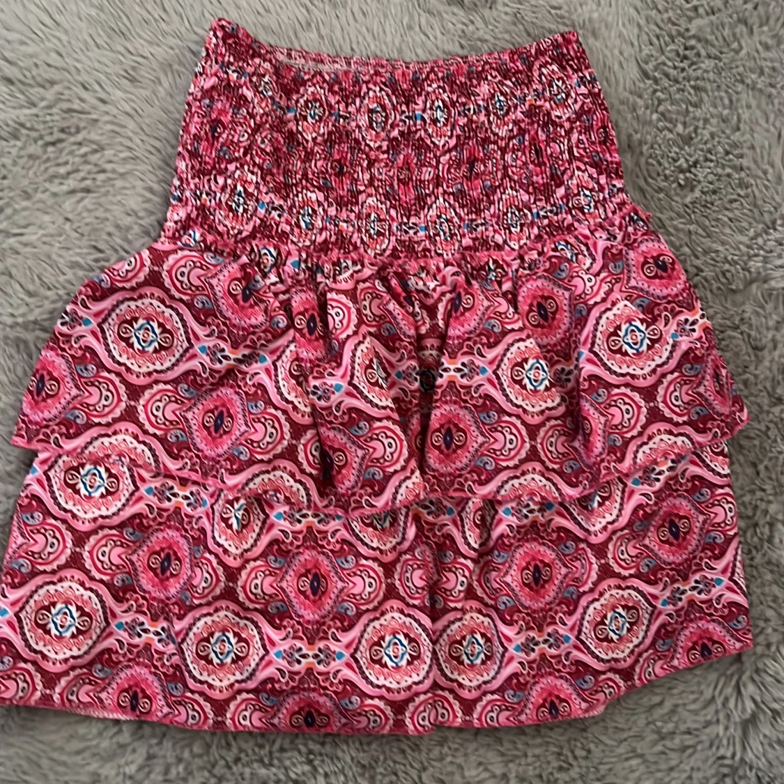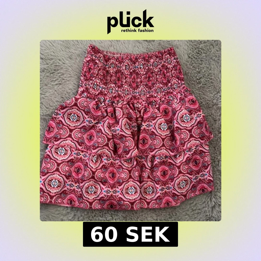 Kjol med inbyggda short, den är stretchug i midjan. jätte fint skick! Knappt använd. Två fläckar som är innuti som inte syns utanför kjolen. Går säkert bort i tvätten. Vet dock inte vart den är ifrån