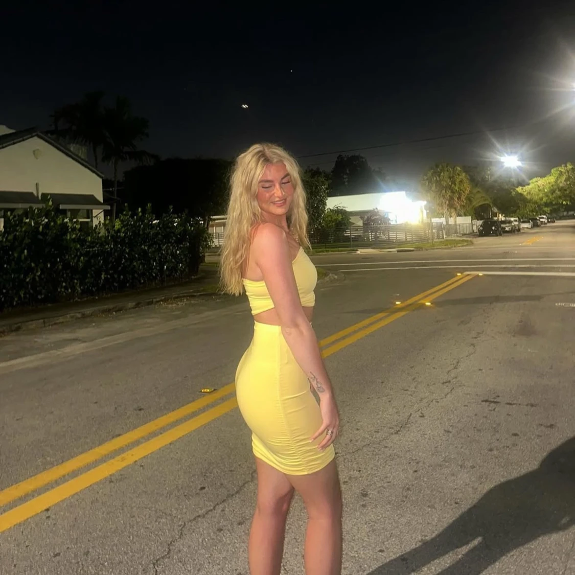 Säljer ett snyggt gult set med tight passform och stretchigt material. Kjolen och toppen är enkel och enfärgad, perfekt för dig som gillar att sticka ut med färg. Midjehög modell som framhäver siluetten och passar till stövlar och klackar!