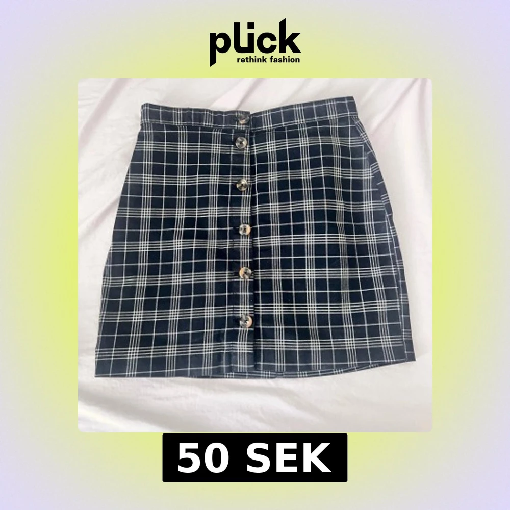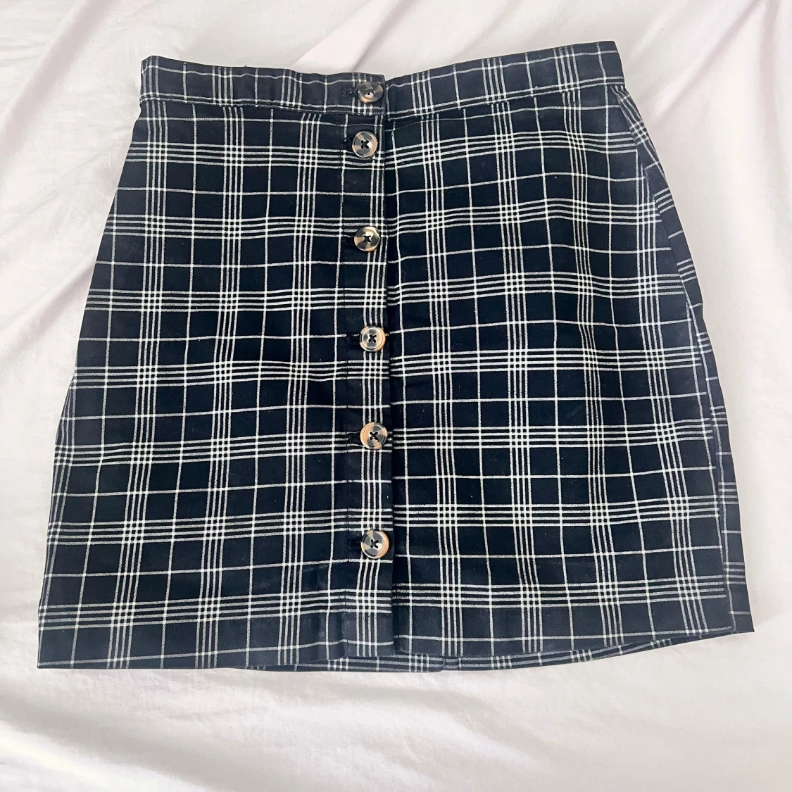 Snygg svartvit rutig kortkjol med raka linjer och knappar hela vägen framtill. Kjolen har en klassisk, lite preppy vibe och passar perfekt till en stickad tröja eller t-shirt. Tidlös design som är lätt att matcha.