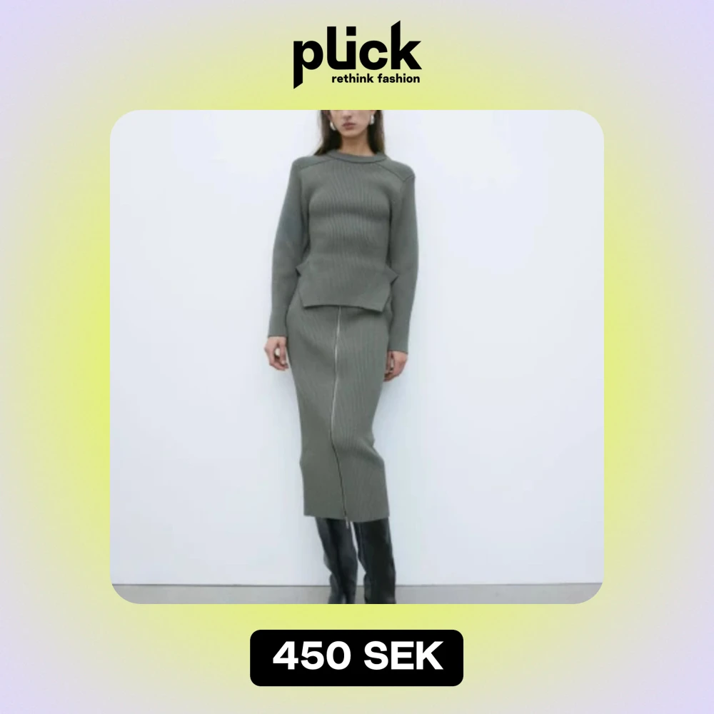 Underbart set i grönt från H&M, nytt med lappar kvar. 57% polyester, 42% polyamid, 1% elastan. Storlek L på tröja och M på kjol.