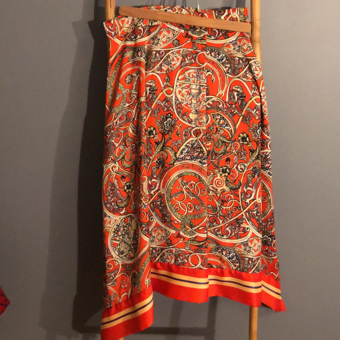 Jätte fin kjol från hm. I silkes material. Ojämn i botten, alltså med två spetsar - Som en sjal som är vikt. slits på två ställen. Blixtlås i sidan. Jätte bra skick säljer för den ej passar längre.