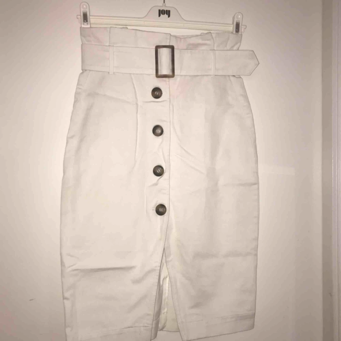 Benvit kjol från H&M hög i midjan och kan dras åt i midjan för fin siluett. Använd 1 gång 🦋