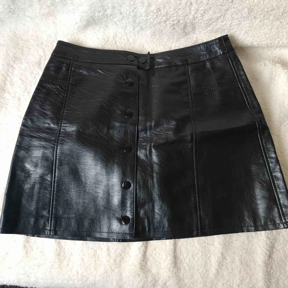 Svart läder kjol. Har använt ett par gånger. Pris kan förhandlas.
