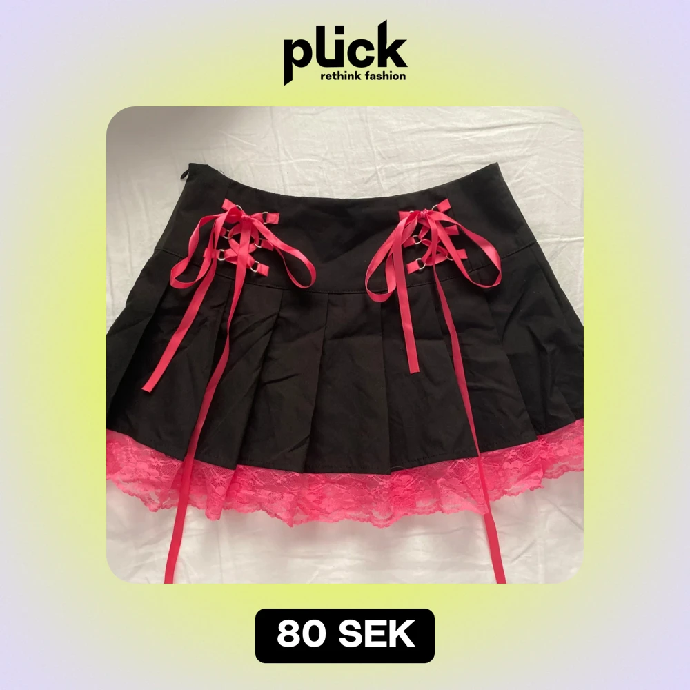 Svart kjol med rosa spets och snörning 🩷köpt för länge sen men endast provad<3