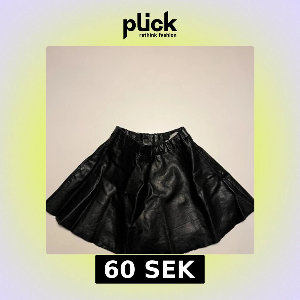 Snygg svart kjol i skinnimitation från H&M. Kjolen har en elastisk midja för bekväm passform och en lätt utställd form som ger en fin siluett. Perfekt för att ge en edgy touch till din outfit.