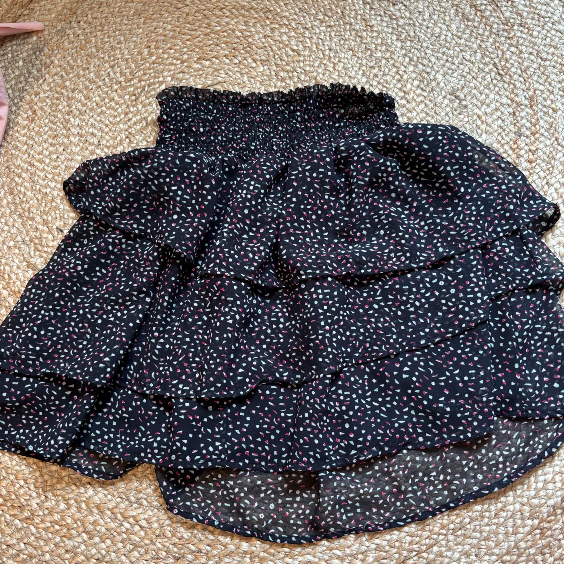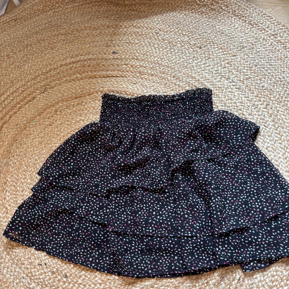 Supersöt svart kortkjol från H&M med volanger och prickigt mönster i vitt och rosa. Kjolen har smockad midja som sitter bekvämt och ger en snygg siluett. Perfekt att matcha med en enkel topp och sneakers för en chill look. Pris går att diskutera 💗💗