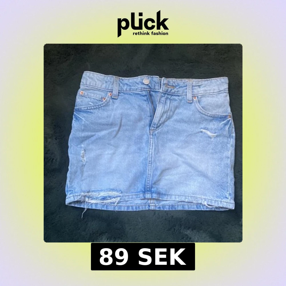 Säljer en ljusblå jeanskjol från H&M i storlek 152. Kjolen har klassisk femficksdesign, slitna detaljer och rå kant nedtill för en cool vibe. Perfekt för dig som gillar avslappnad stil och denim. Passar dig som vill ha en kort och trendig kjol.