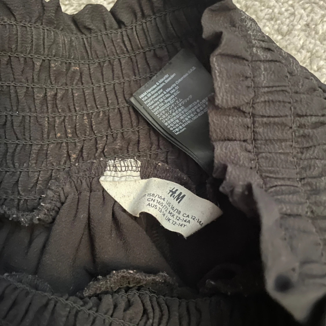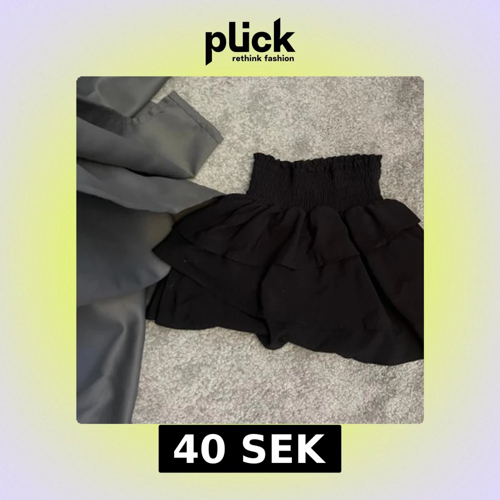 Supersöt svart kortkjol från H&M med bred smock i midjan och dubbla volanger. Kjolen är luftig och har en riktigt skön passform som sitter snyggt på höften.