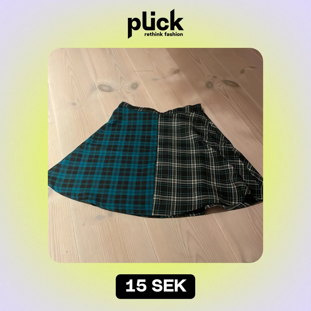 Säljer en supercool rutig kjol från H&M i storlek 164. Kjolen har ett unikt mönster med två olika rutiga tyger i blått och svart. Perfekt för både vardag och fest! 🖤💙
