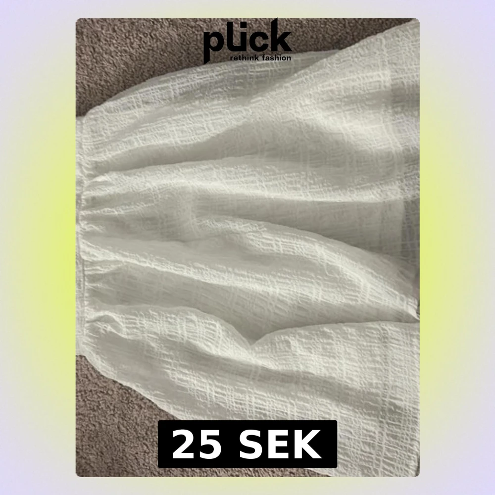 Säljer en vit kortkjol med resår i midjan och ett diskret strukturerat mönster. Kjolen är gjord i luftig bomull och har en lätt volangig form som ger en avslappnad och trendig look.