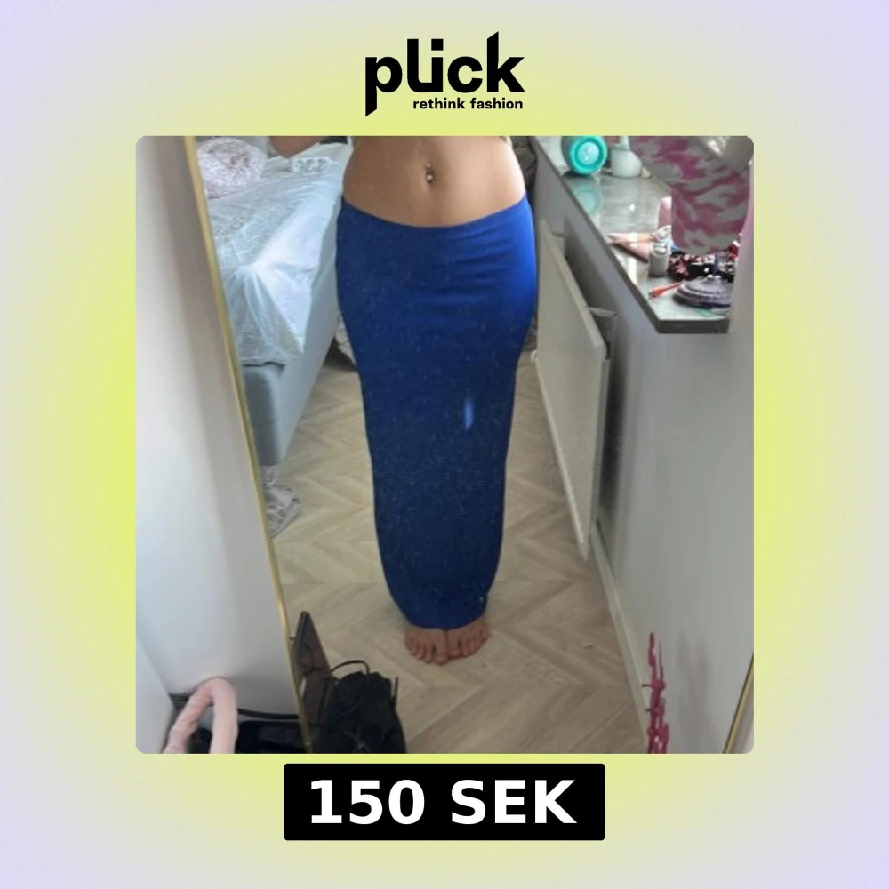 Säljer en enkel och snygg blå långkjol i stretchigt material. Kjolen har en tight passform och sitter högt i midjan. Perfekt för dig som gillar en stilren look med lite edge. Färgen är klarblå och tyget är mjukt och följsamt.