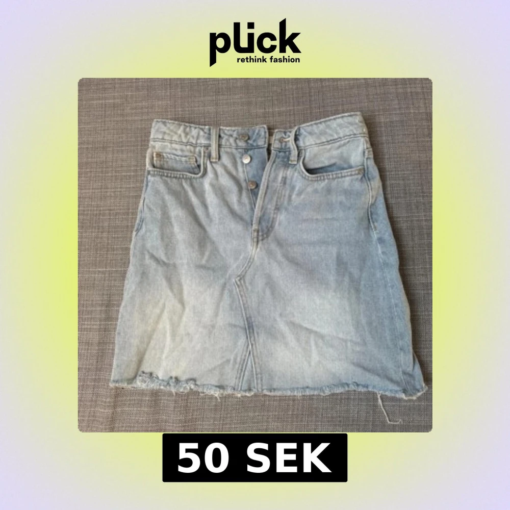 Snygg ljusblå jeanskjol med hög midja och rå, fransig kant nertill. Klassisk femficksmodell med knappgylf och bälteshällor. Perfekt till sneakers eller boots för en chill look.