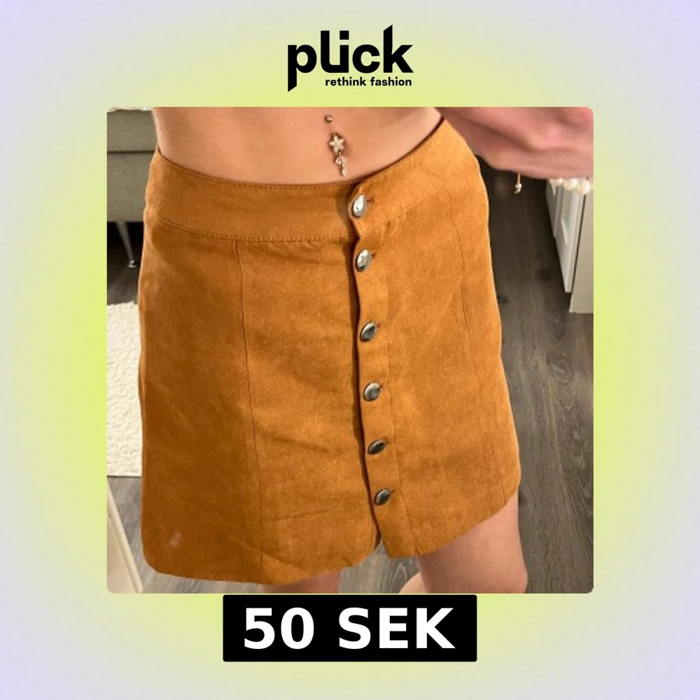 Snygg kort brun kjol i manchester med silverfärgade knappar framtill i mycket bra skick!