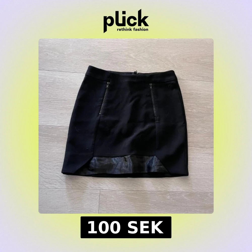 Snygg svart kortkjol med två dragkedjor framtill och en liten slits med glansigt tygdetalj längst ner. Perfekt att styla med en cool topp eller stickad tröja.