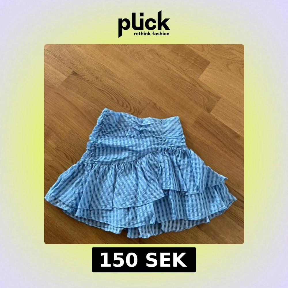 Kort kjol i blått och vitt med rutigt mönster och volanger.