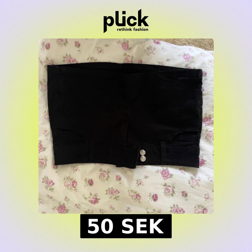 Snygg svart kortkjol med knappar framtill. Kjolen har en stilren design med fickor baktill och är perfekt för en trendig look.
