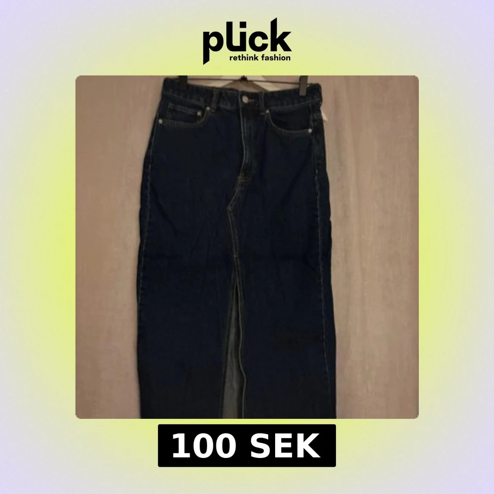 Säljer en mörkblå lång jeanskjol från H&M med klassisk femficksdesign och slits framtill. Kjolen har hög midja och raka linjer, perfekt för en cool och avslappnad look. Gjord i kraftig denim med snygga kontrastsömmar.