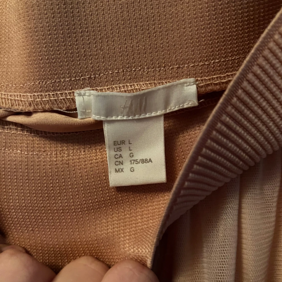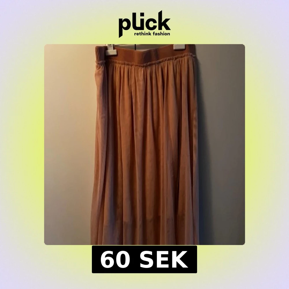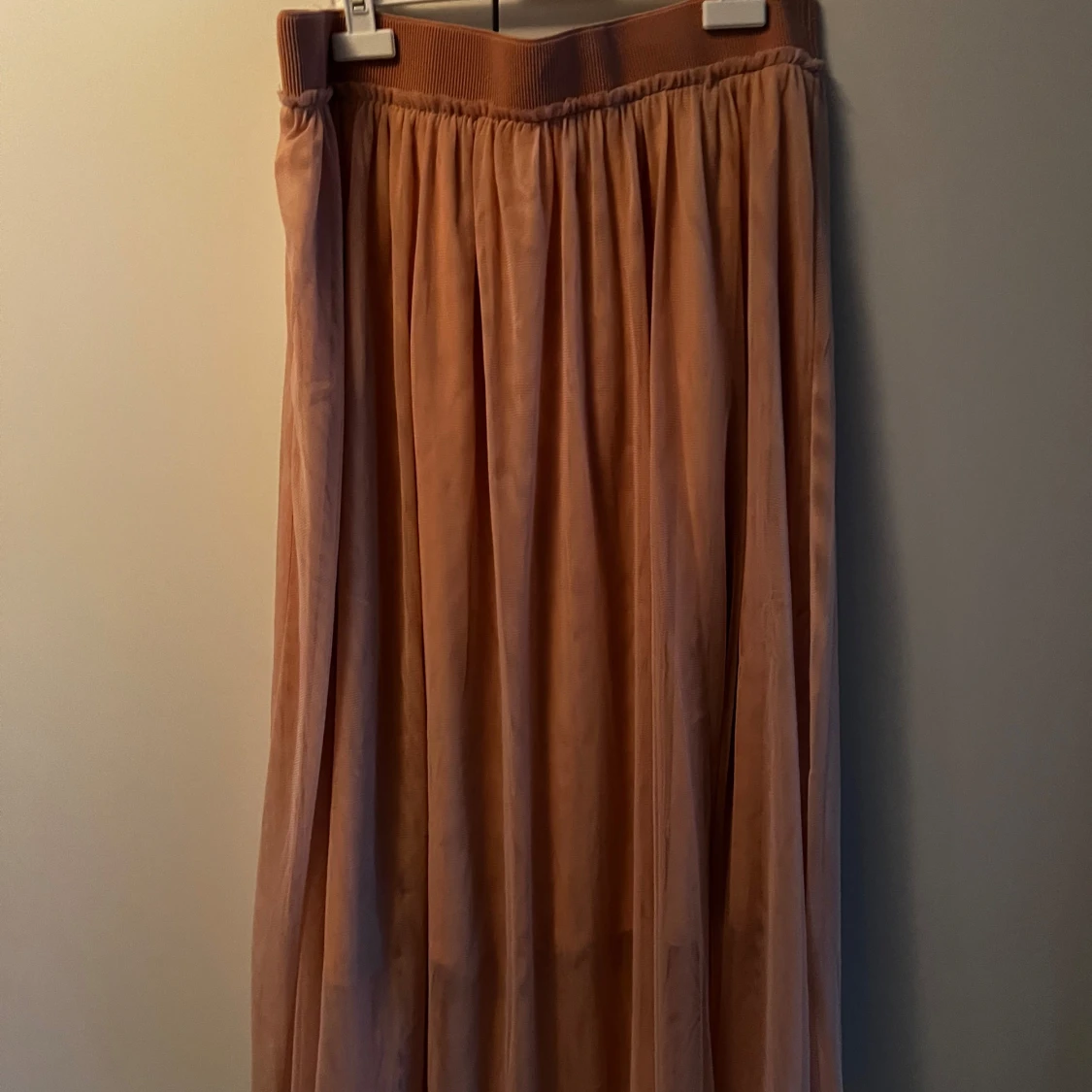 Lång, plisserad beige kjol från H&M i storlek L. Kjolen har bred resår i midjan för extra komfort och ett snyggt fall. Katt finns i hemmet, kontakta vid fler frågor🌷