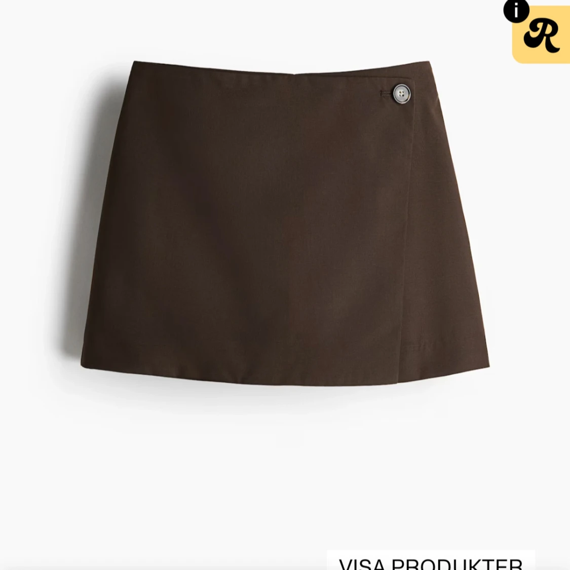 Snygg brun kortkjol i omlottmodell med en stilren knappdetalj i midjan. Kjolen har en rak passform och är tillverkad i ett slätt tyg som ger en clean look. Perfekt att matcha med en oversized skjorta eller stickad tröja.